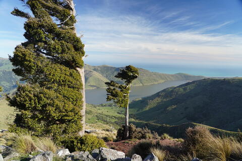Te Whenua Ora is a conservation project on the main road to Little River from Christchurch. The land consists of 536ha on the shores of Te Roto O Wairewa (Lake Forsyth) managed by High Bare Peak Ltd. It spans sea level wetlands to subalpine tussock culminating at the summit of High Bare Peak (756m). Damp south-facing gullies provide refuge to remnants of the original forest cover and contrast with drier north-facing slopes above the township of Little River. The former have been identified in the Christchurch District Plan as a recommended area for protection (RAP) and Te Roto O Wairewa as an area of ecological significance. Te Whenua Ora also offers outstanding views over Little River, Te Roto O Wairewa, Kaitorete spit and the Southern Alps beyond. Its proximity to Little River township, the Rail Trail and the highway linking Christchurch and Akaroa, means it has significant potential for outdoor recreation.
