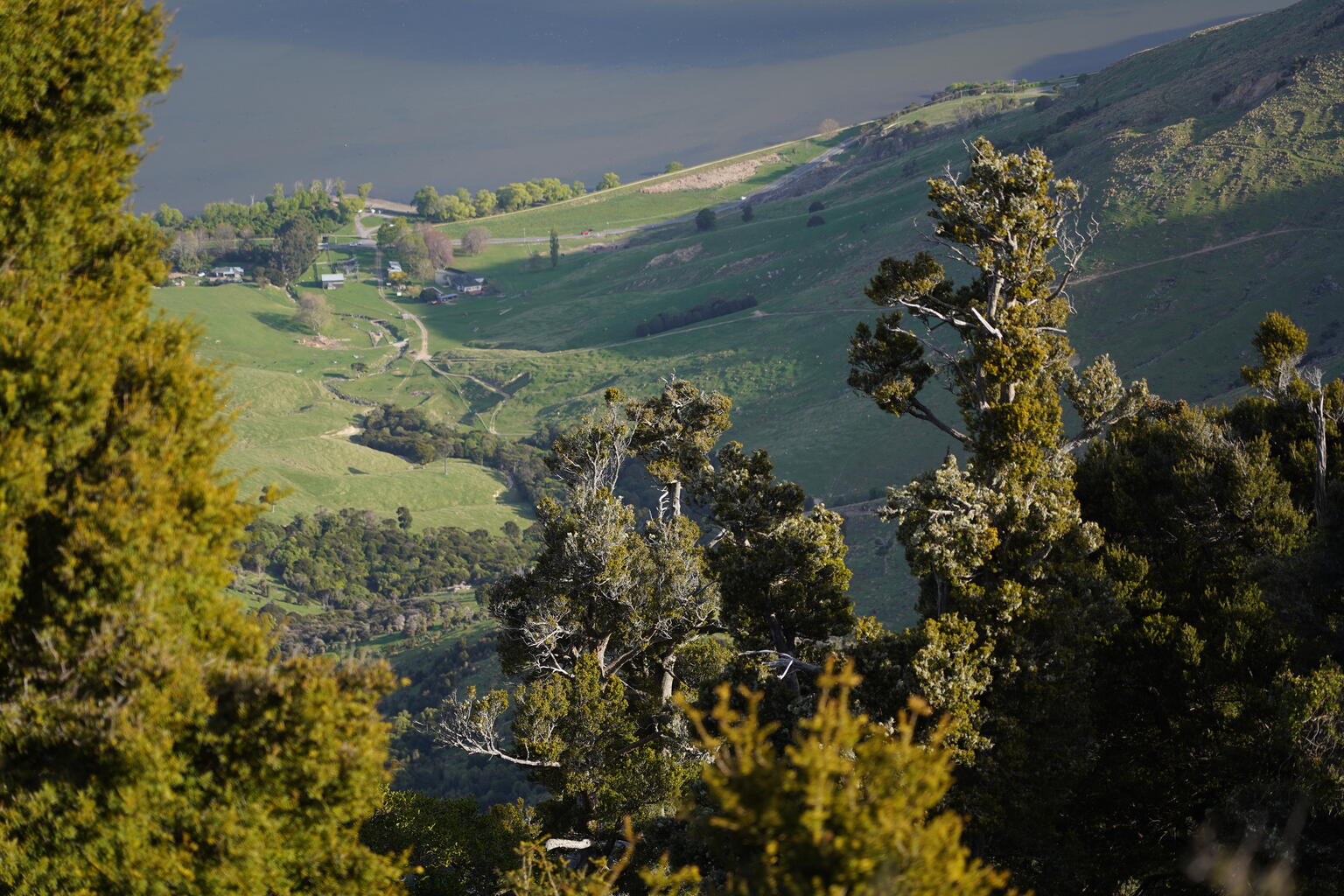 Te Whenua Ora is a conservation project on the main road to Little River from Christchurch. The land consists of 536ha on the shores of Te Roto O Wairewa (Lake Forsyth) managed by High Bare Peak Ltd. It spans sea level wetlands to subalpine tussock culminating at the summit of High Bare Peak (756m). Damp south-facing gullies provide refuge to remnants of the original forest cover and contrast with drier north-facing slopes above the township of Little River. The former have been identified in the Christchurch District Plan as a recommended area for protection (RAP) and Te Roto O Wairewa as an area of ecological significance. Te Whenua Ora also offers outstanding views over Little River, Te Roto O Wairewa, Kaitorete spit and the Southern Alps beyond. Its proximity to Little River township, the Rail Trail and the highway linking Christchurch and Akaroa, means it has significant potential for outdoor recreation.